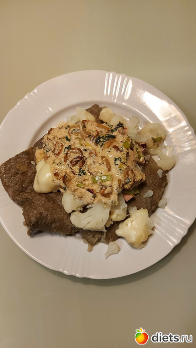 Мой с рисом, его, как ни странно, с киноа, и он нам обоим даже больше понравился - киноа совсем не чувствовалось