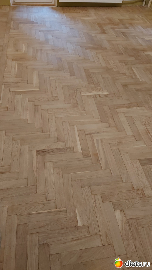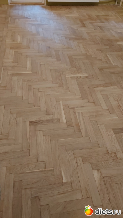 После шлифовки нужно было обработать бесцветным средством по дереву. Потом лак. Тоже бесцветный яхтерный. В процессе "жизни" все светлые лаки и краски для пола, темнеют