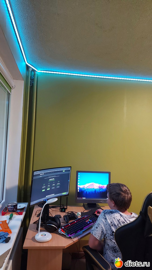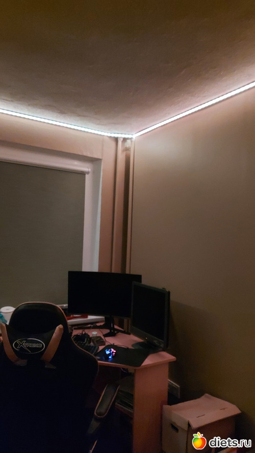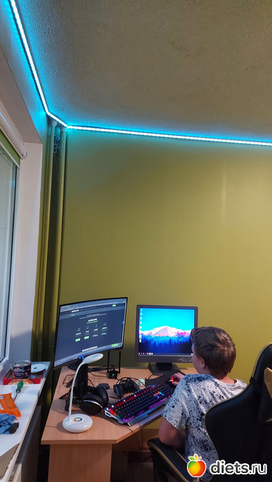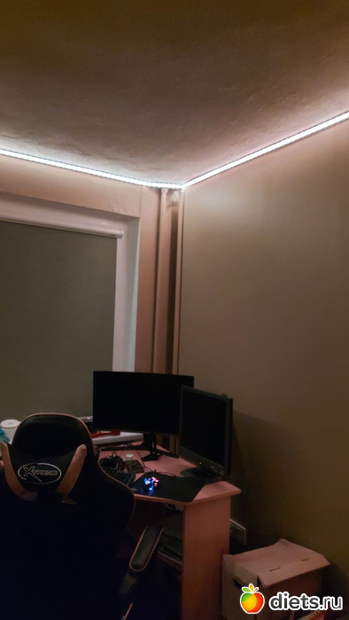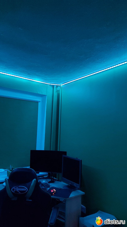 Еще одной дорогой штукой было желание сына подвесить к потолку лед полоски. По первичным рассчетам они должны были обойтись в 400 евро, и дети были готовы оплатить карманными полоивну суммы. В итоге удалось найти более дешевые, и с детей муж ничего не взял. Эти полоски горят разными цветами, вроде 21 вариант подсветки, с пультом. По мне, так ерунда, но дети мечтали о них год