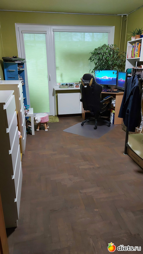 У нас есть часть гостинной, отделенная стелажом, там стоит раскладывающийся диван. На нем спит мама, когда приезжает к нам. Возможно выселим сына туда или сами переселимся, а ему отдадим нашу спальню - эта комната наименее используемая сейчас, мы там только спим. Или еще как-то перепланируем, у нас популярно делать мини-комнатку из балкона, его конечно надо будет утеплить радиатором, но это все решаемо. Сейчас один из 2х балконов используется как склад. Еще есть вариант гардеробную переделать под комнату. Не такие уж у нас гардеробы