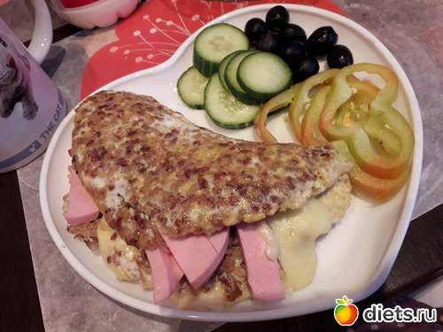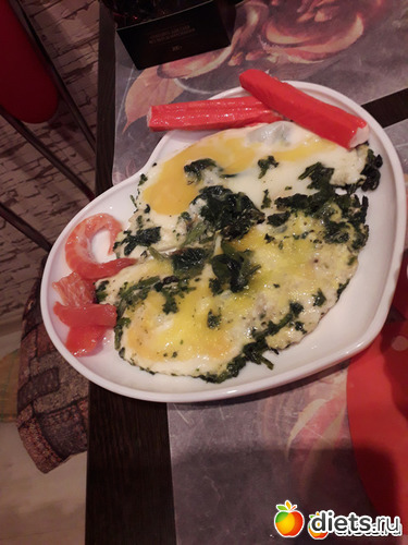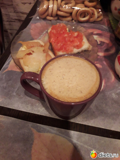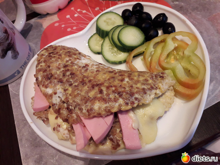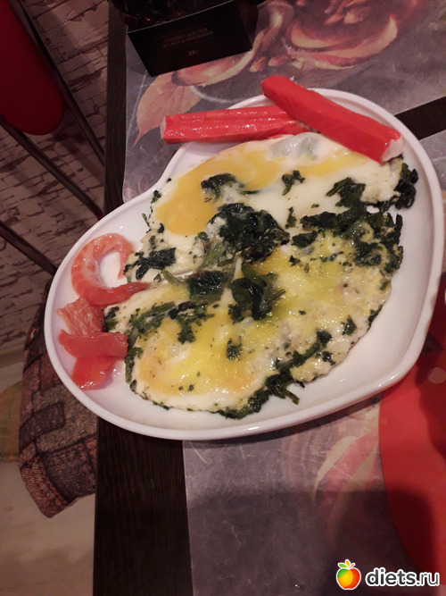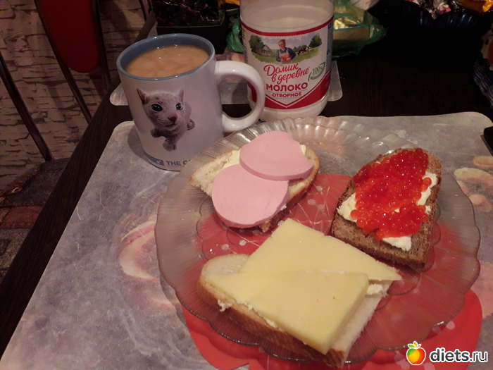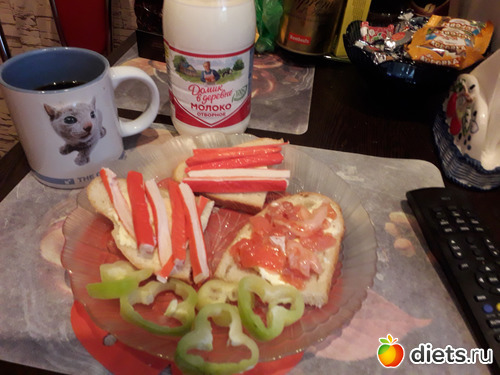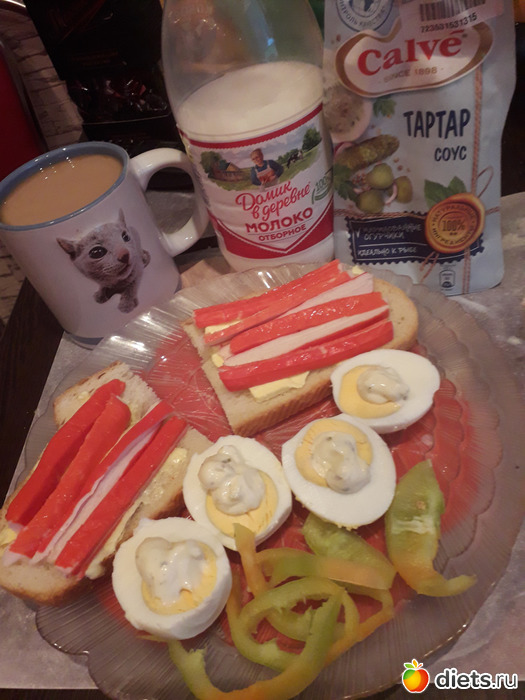 -Яйца с соусом, крабовые палочки, кофемолоко
