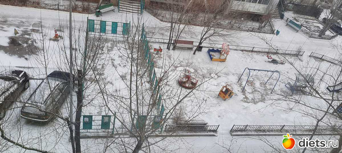 снежок идёт, а по крышам прям позёмка, потому что ветер