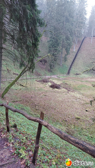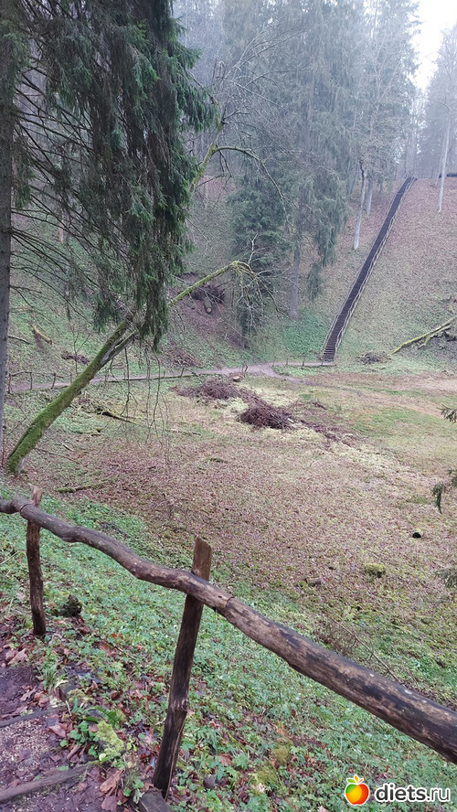 Следующая точка - Чертова яма. Наверняка я ее уже показывала в дневничке, т к заезжаем часто. Яма глубиной 40 м, и под землей глубина болота 150 м. Как говорит информационный стенд, в яму может поместиться 10тиэтажный дом. В это время года, когда листья уже все опали, она особенно красива и хорошо просматривается
