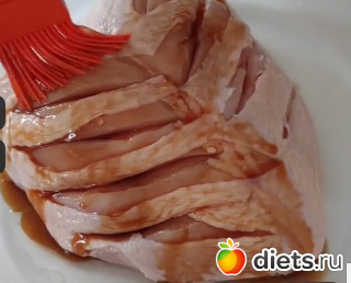 Обильно смазываем куриную грудку и морковь получившимся маринадом. Если время позволяет, то можно в таком виде оставить даже на несколько часов... Читать полностью