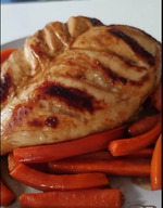 Обильно смазываем куриную грудку и морковь получившимся маринадом. Если время позволяет, то можно в таком виде оставить даже на несколько часов. А потом отправить в духовку на полчасика при 180С. Мы не оставляли и всё равно получилось волшебно.