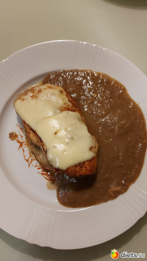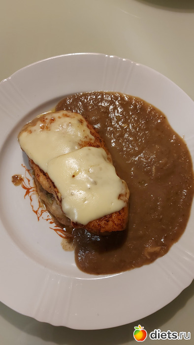 По этому поводу приготовил он нам курфиле с начинкой из шампиньонов, соус воде как из кабачка цуккини