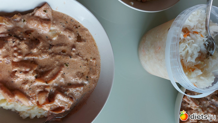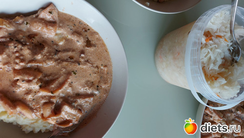 *тушеные кальмары, 1 размятая картошка, квашеная капуста