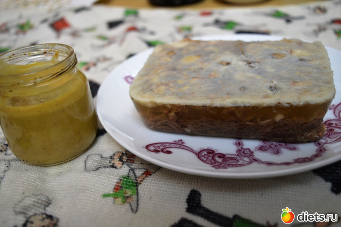 домашний холодец. Это мне за работу принесли, да ещё горчичку не забыли. Кайф! Муж не любит холодец, говорит, не нравится, что он тресётся