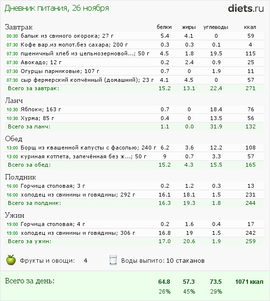 . А мне врач сказал его варить и есть постоянно (артроз). На меня нападёт, сварю - ем несколько дней. Съем, потом опять забуду. А тут готовый принесли. Так что у меня на полдник и на ужин - холодец. По калориям опять белка мало, а жиров много. Я взвешиваю еду по факту, получается так не правильно. А раньше я с вечера готовила и записывала и всё получалось, вес стабильно уходил. Значит, так и буду делать.