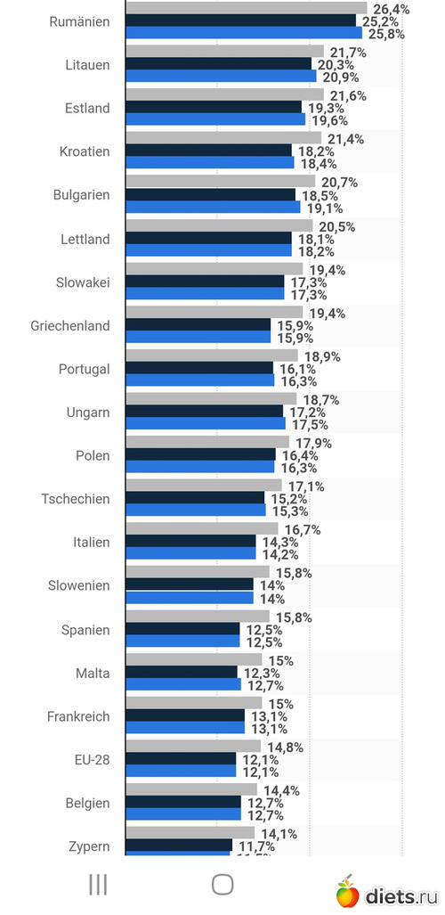 Получается у семьи с 2 детьми все уже будет совершенно иначе выглядеть. В самом простом случае посчитаем, что 4 надо вдвойне больше и будем уже иметь соответственно 21,4% и 716 евро.