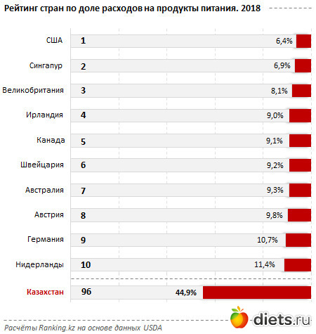 По статистике казахстанцы тратят на еду свыше 50% доходов.