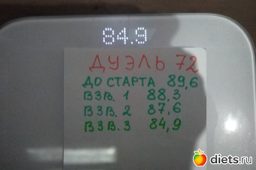 С прошлого взвешивания минус 900, но с начала дуэли плюс 200.