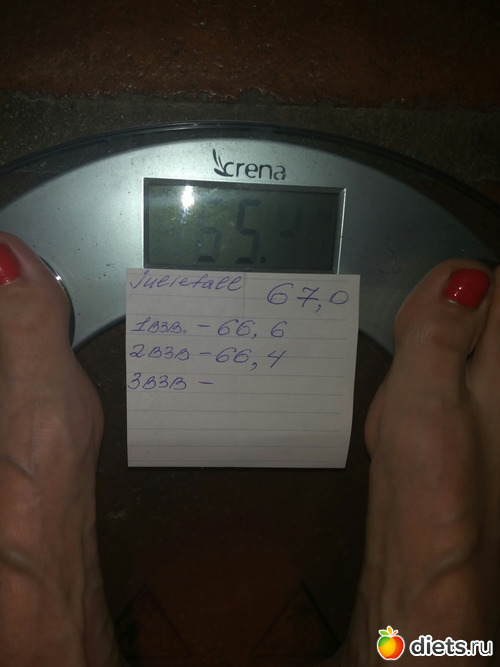На одном месте покзывают разный вес. От 64,4 до 66,9