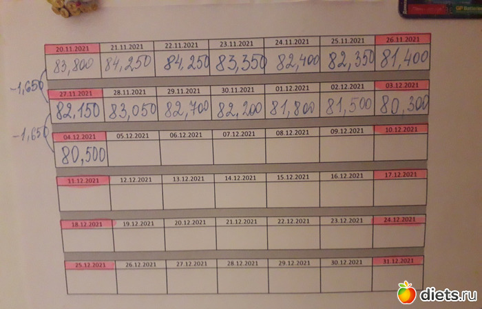 В итоге я хочу выйти на минус 500-600 грамм в неделю