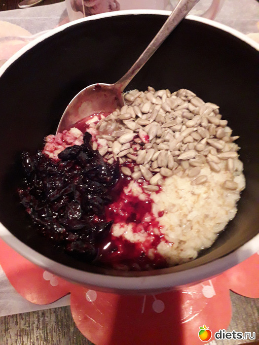 -Геркулесовая каша-на воде, с семечками, с черной смородиной-пятиминуткой