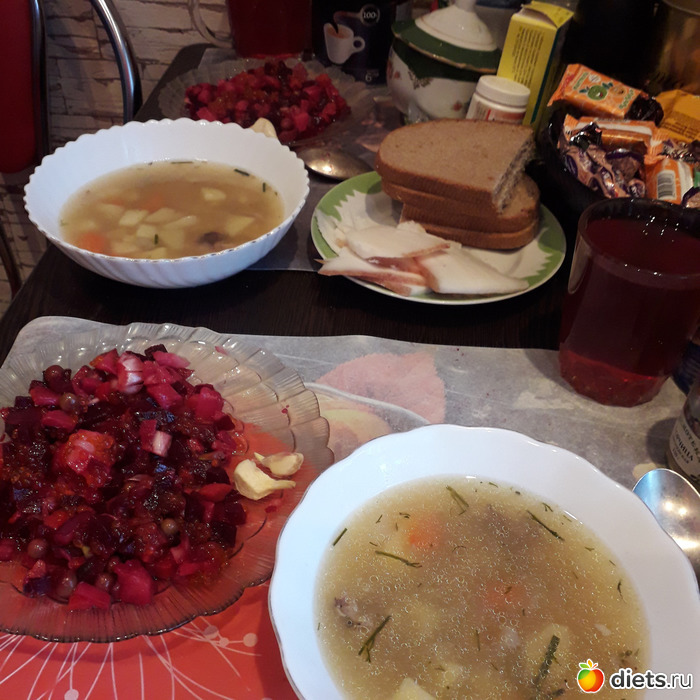 -Винегрет, суп грибной