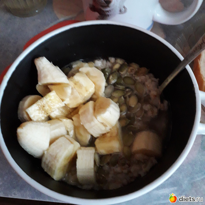 -Каша геркулесовая на воде, с медом, тыквенными семечками, бананом