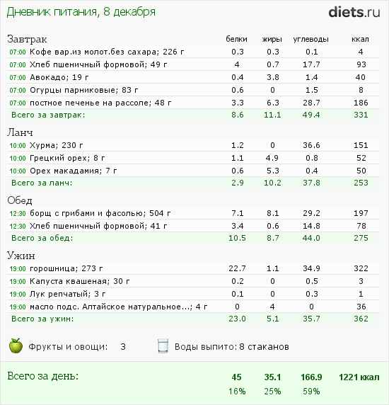 Калорийность продуктов