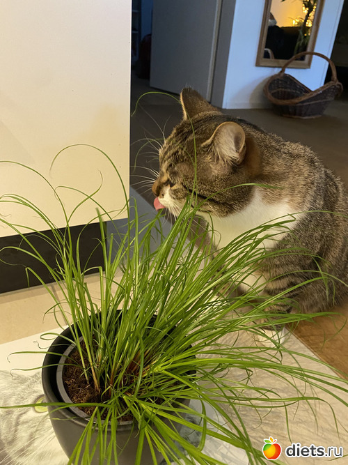 Купил ей сегодня кошачью траву, с радостью погрызла.