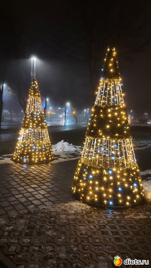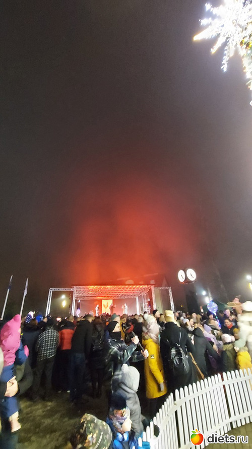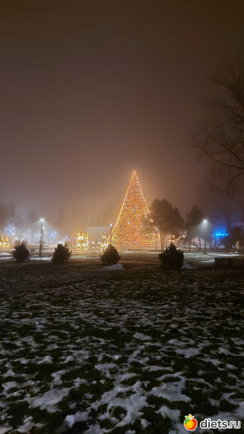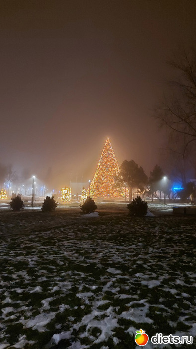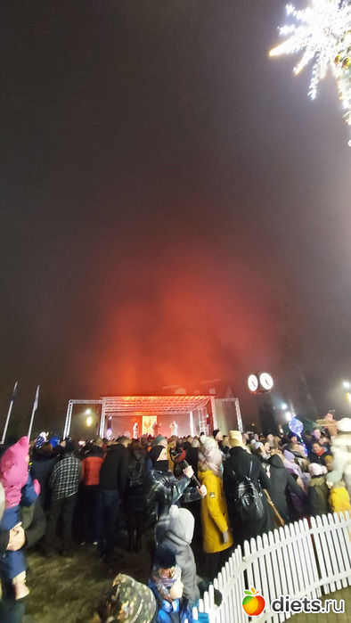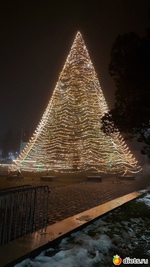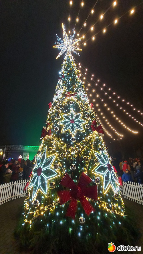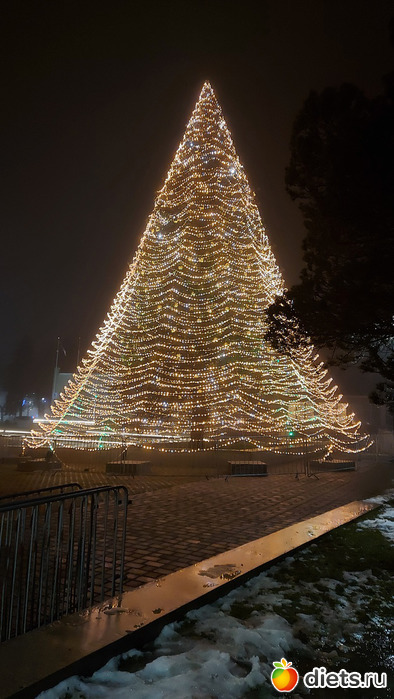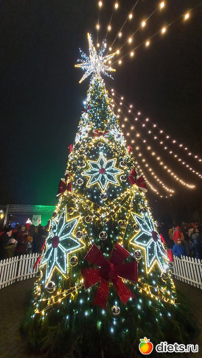 Как только закончились фейерверки и мы опустили глаза с неба на землю, оказалось, что елочку в этото момент-то и зажгли
