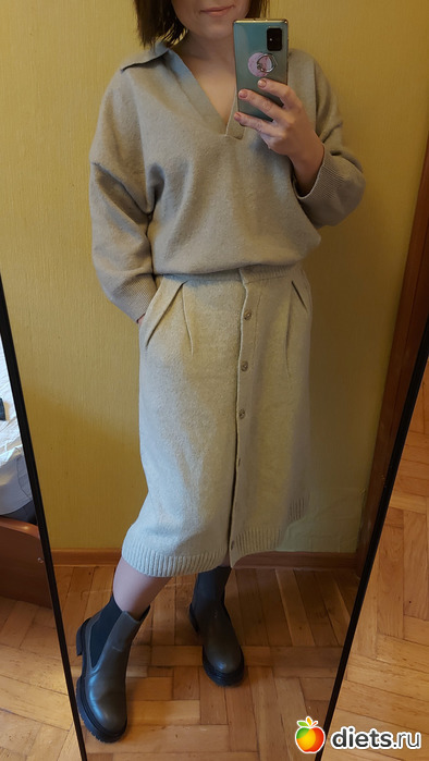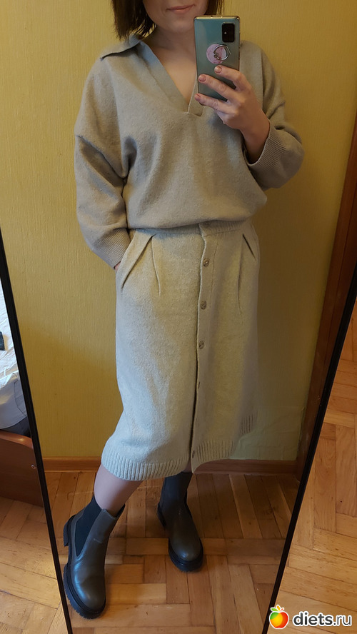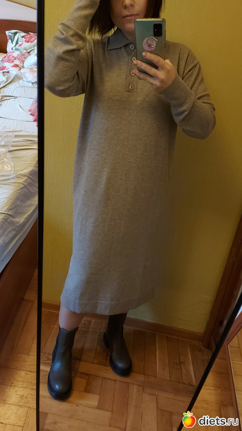 Я заказывала это платье в начале осени в размере S и вернула, потому что мне были очень длинны рукава. Перезаказывать в XS сразу не стала, т к думала, что врядли в меньшем размере будут короче именно рукава. Но платье все не шло уменя из головы, очень уж я люблю такие уютные балахоны. Скидка спровоцировала меня все-таки рискнуть, ну и вот, рукава все равно длинноваты, но не так критично