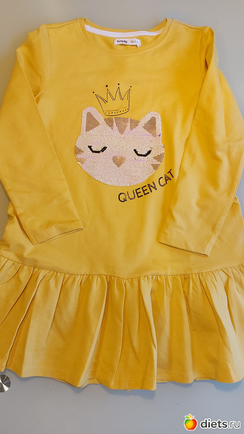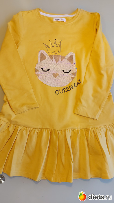4. Желтенькое платье на каждый день в садик с картинкой из переворачиваемых пайеток. Sinsay