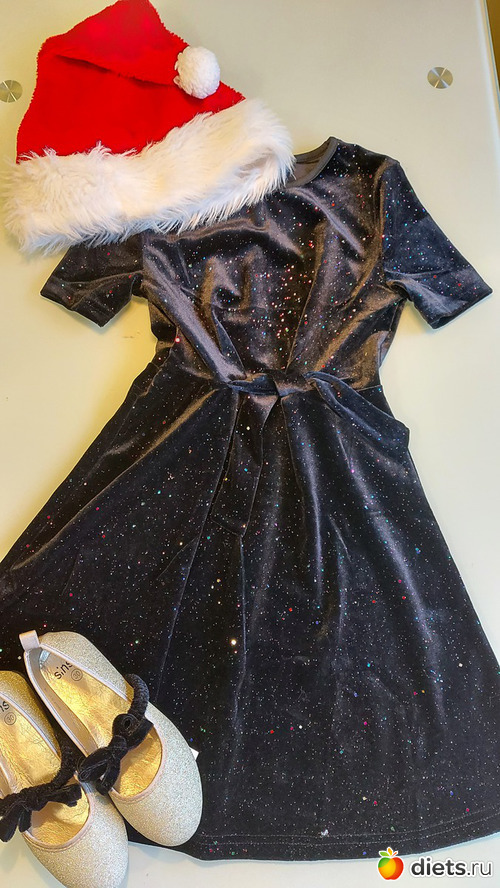 Платье показывала в предыдущем посте. Шапка Деда Мороза потому, что так велено одеться в садик в конкретный день (нарядно и с шапкой)