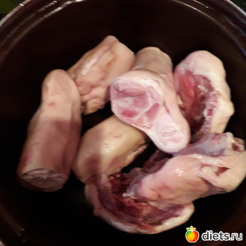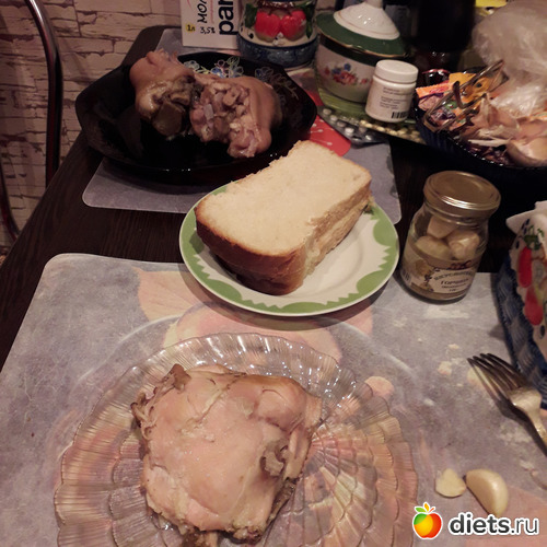 -У мужа отваренные свиные ножки -рулечки(захотелось ему с горчицей