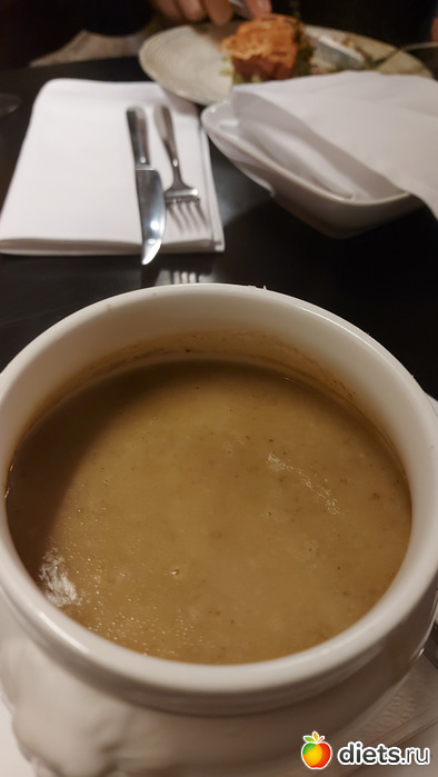 Заказывали на первое я - суп-пюре из грибов, он - тартар из лосося