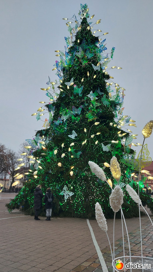 После обеда поехали посмотреть нашу елочку на главную площадь. Эту елочку восстановили после поджога, я до не видела ее, поэтому не знаю, как было, но вроде все выглядит как будто так и было