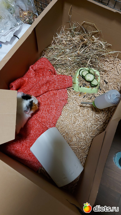 Свинка вроде в порядке, вчера вернули ее в общую клетку