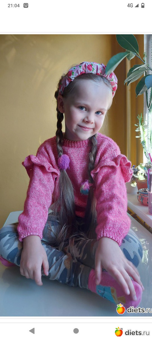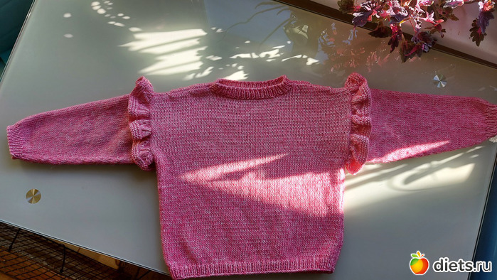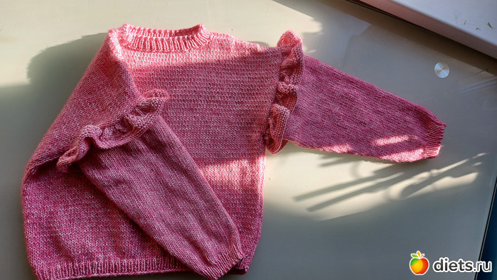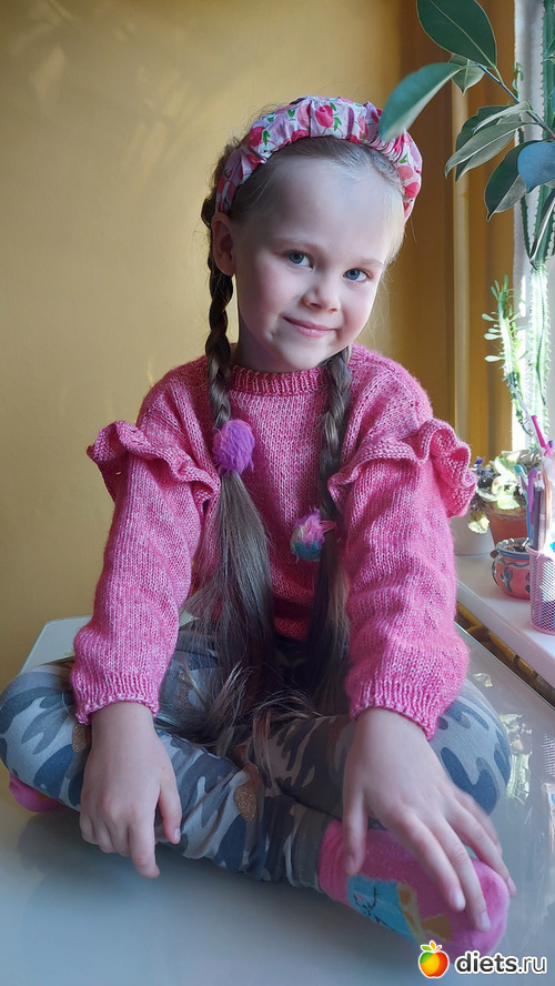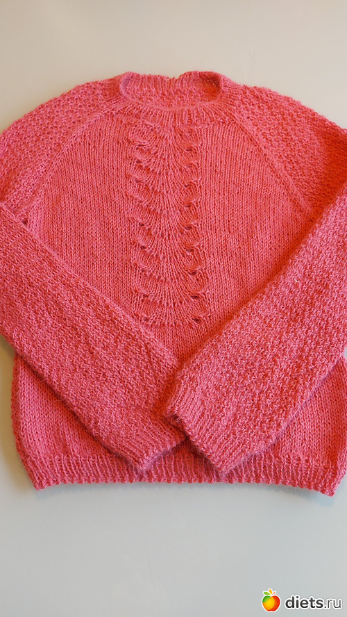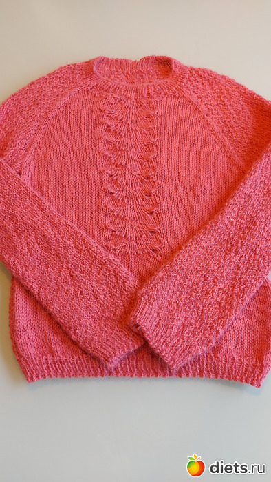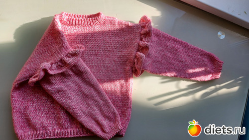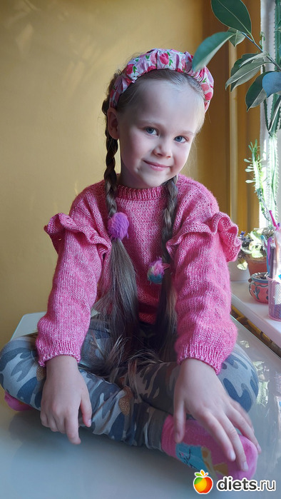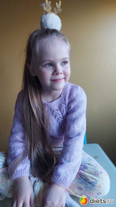 23. Джемперок дочке, пряжу и модель она выбирала сама. Пряжа сиреневая с зеленоватым люрексом
