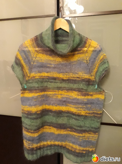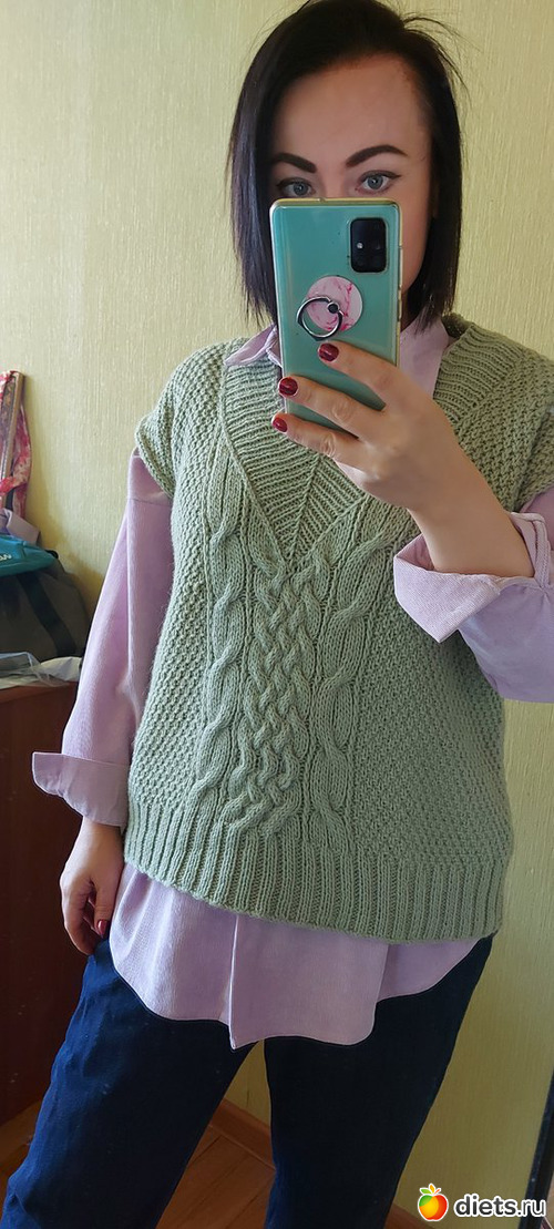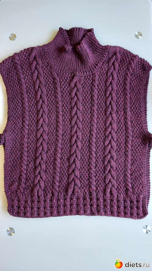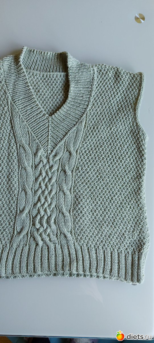2. Жилет мужу. 80 % меринос, 20 % акрил. Начинала еще в июне 2020, закончила 2го января 2021. Изначально планировался свитером, но пряжи хватило только на жилет, докупить не удалось. Но мужа устроил и такой вариант