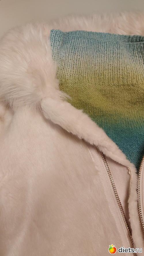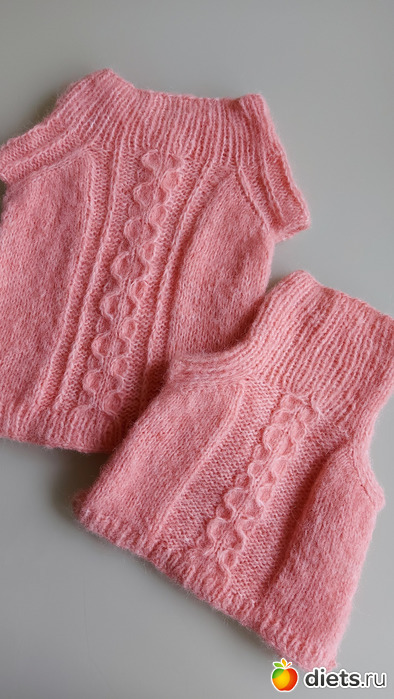 25. Ну и последнее - комплект шеегреек мне и дочке. Пряжа вообще-то покупалась мне на кардиган, но доча как увидела ее, сразу попросила манишку. Я ее спросила, что ж мне делать с остатком пряжи, ведь на манишку уйдет гораздо меньше, чем на плечевое изделие, и она мне предложила и себе такую же связать
