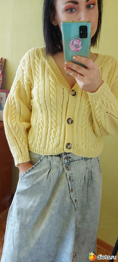 Заровский вернула, начала вязать. Закончила только в конце весны, пуговицы покупала в сентябре, а носить начала.. в январе этого года