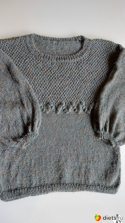 14. Джемпер из моей самой любимой пряжи - 100 % альпаки от Дропс. Работка с приключениями. Куда-то затерялся один моток пряжи, пришлось делать с укороченными рукавами. Потом моток все-таки нашелся, но сломались спицы