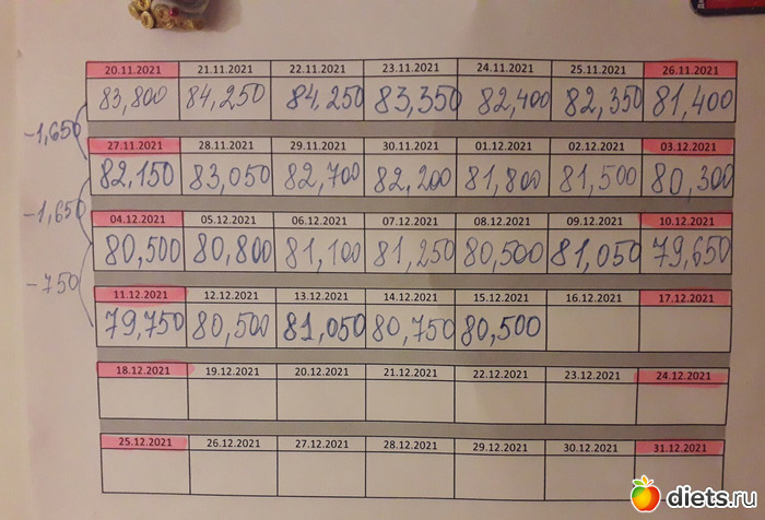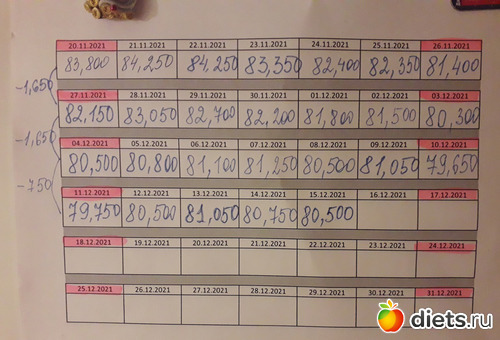 после тренировок начала с привесов (в моей таблице дни тренировок выделены гламурным розовым