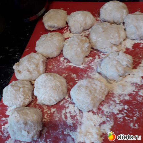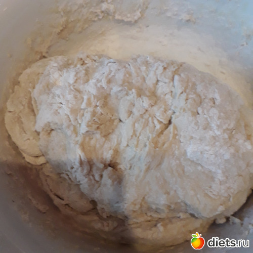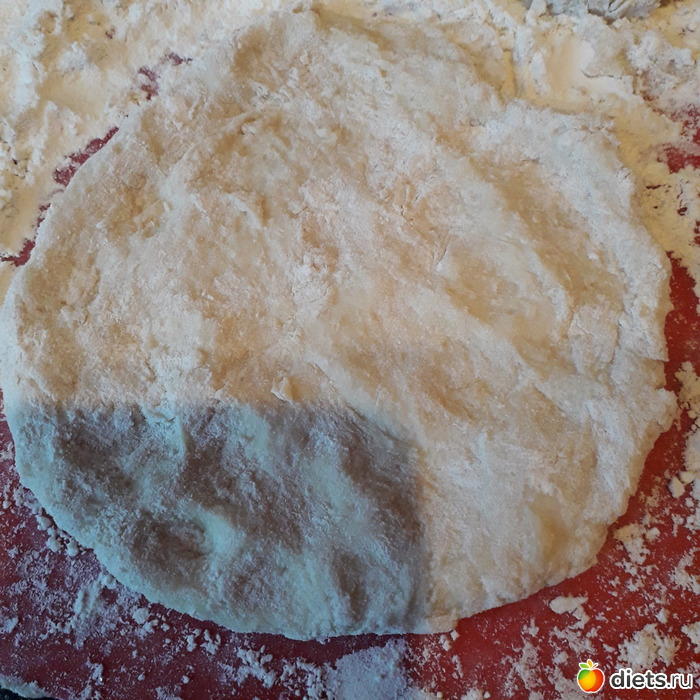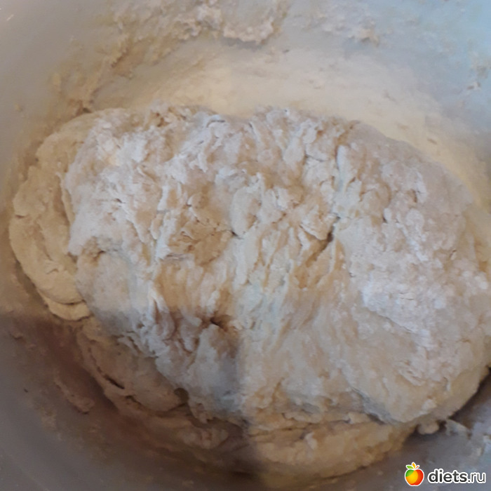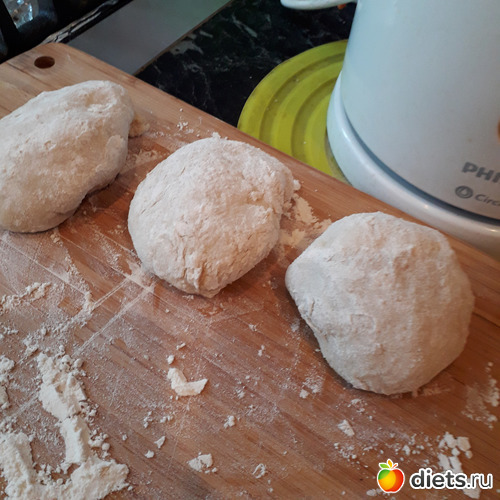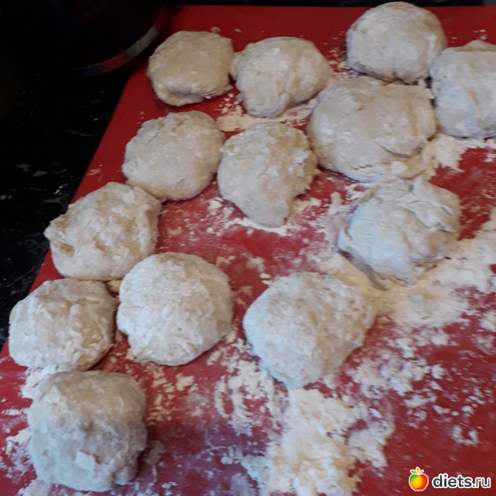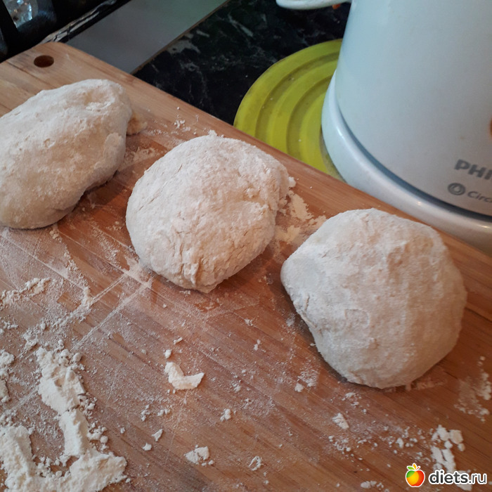 Тесто не должно быть забито мукой-оно должно немного прилипать к рукам!