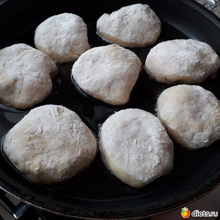 Жарим пирожки на растительном масле. Первую сторону жарим-под крышкой.