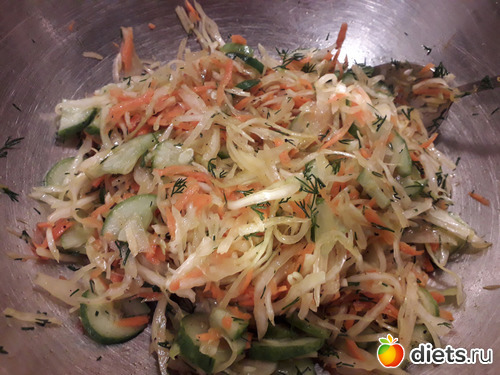 5. Ну это естественно, нашинкованную капусту перемешиваем