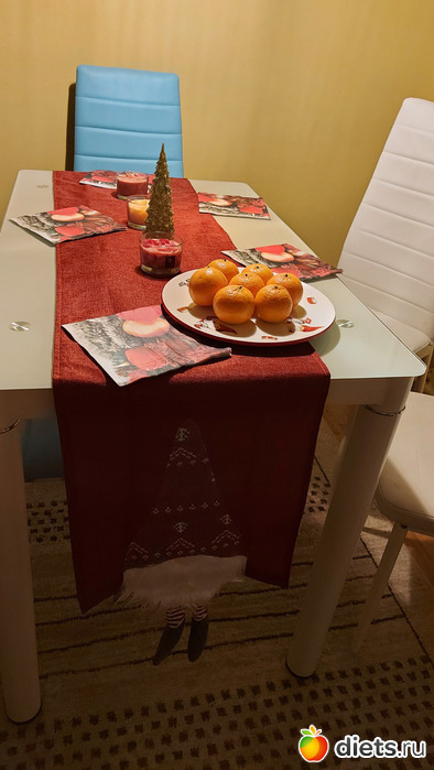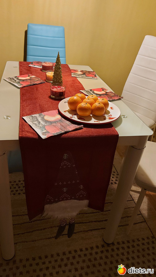 Повесила на стол новую скатерть с гномиками (показывала в покупках)