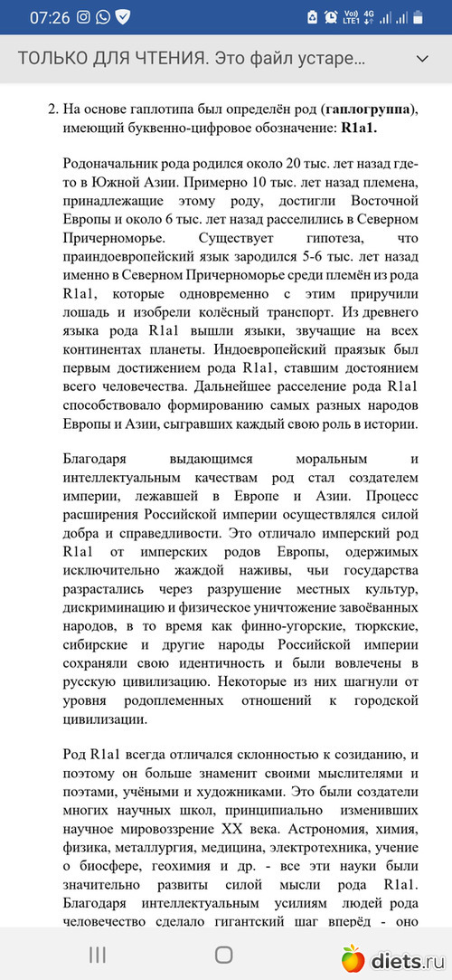 "Этот этап – чрезвычайно важный для будущих европейцев вообще, и ариев в частности. В ходе его произошло разделение родов на западно- и восточно-европейские, на роды арийский и кельтский. Произошло выделение рода будущих славян".