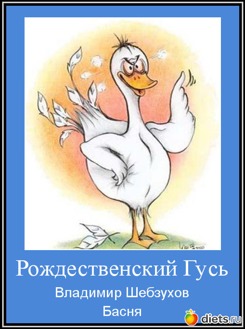 Вам басню с моралью поведать берусь. Рождественской назван был птицею гусь. Узнавши об этом, герой ожидал От птичьих собратьев восторгов, похвал… И впрямь, во дворе млады-куры шептались, С досадой одной, петуху, мол, достались. Походка Гуся стала неповторима. Уж крякали утки, лишь шествовал мимо. И даже Индюк, император двора, Решил поздороваться первым с утра...
