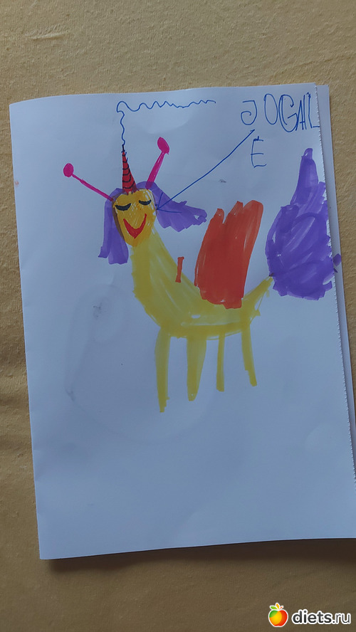 Еще она нарисовала открытку, дочку мою нарисовала в виде единорога