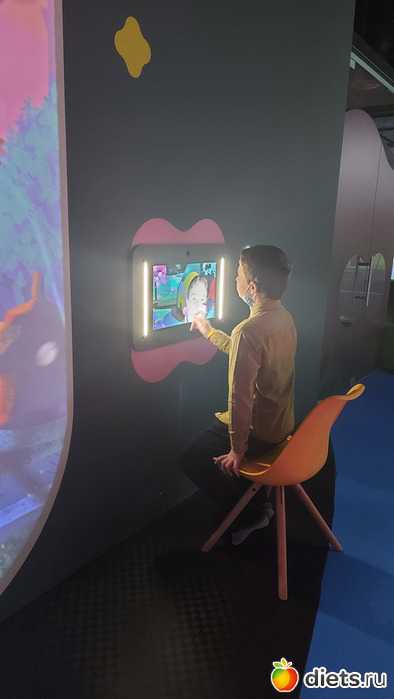Единственное, что его заинтересовало - экран, где можно было себя сфотографировать и потом всяко изменять фото и проектировать их на стену