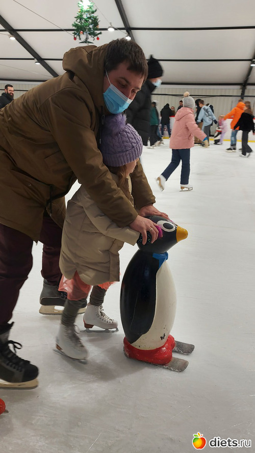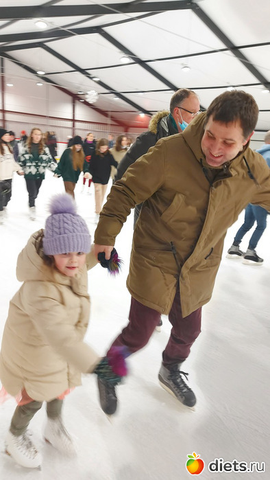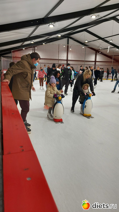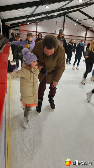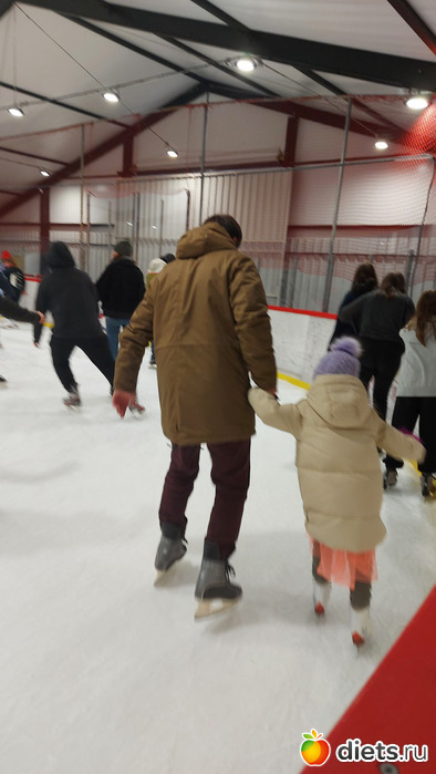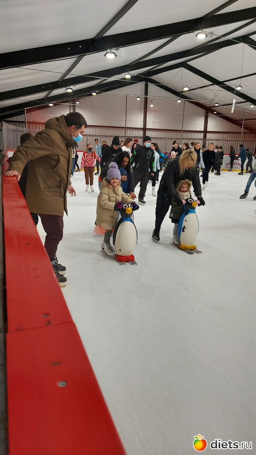 На катке здорово, но есть несколько минусов: отстояли огромную очередь, минут 20 как минимум; коньки выдают жуткого состояния; людей очень много, просто толпа