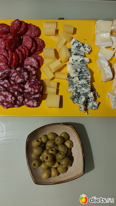 Такие закуски у нас были: сырно-колбасная тарелка, оливки