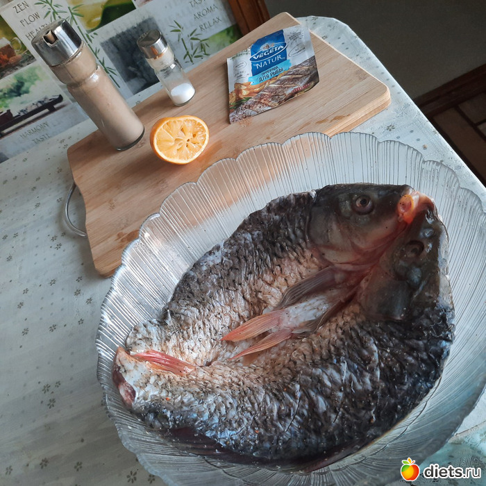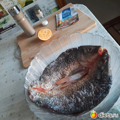 Вчера сосед по дому продавал сазанов и я купила одного, грамм на 800 где-то. Хотела запечь как-нибудь, а он оказался разрезанным как на коктал, вдоль хребта. А коктал - национальное казахское блюдо- я никогда в жизни не готовила,