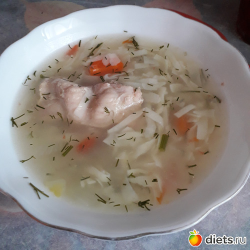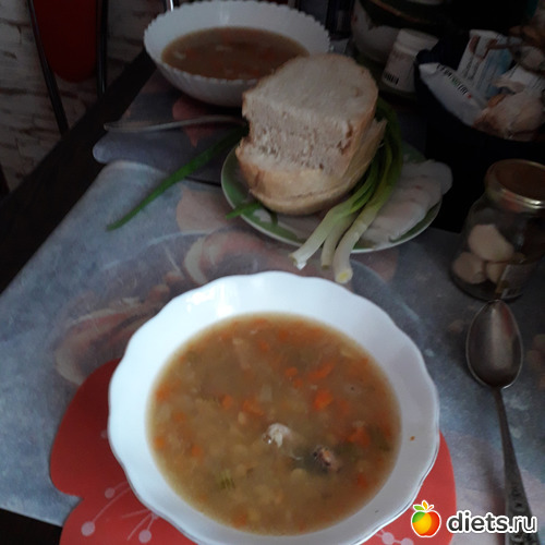 -Суп-куриная лапша, свекла с чесноком, грецкими орехами, черносливом и майонезом, компот