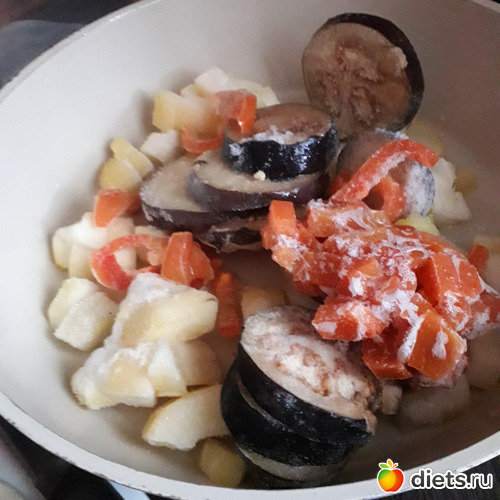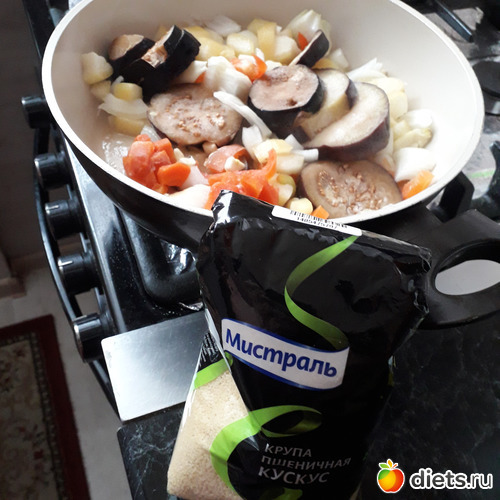 -Потушила из замороженных на зиму овощей-овощное ассорти в сметане с кус-кусом